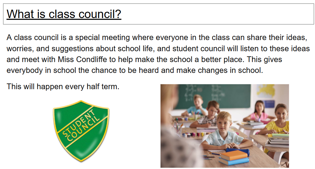 Every class holds a Class Council session once every half term.